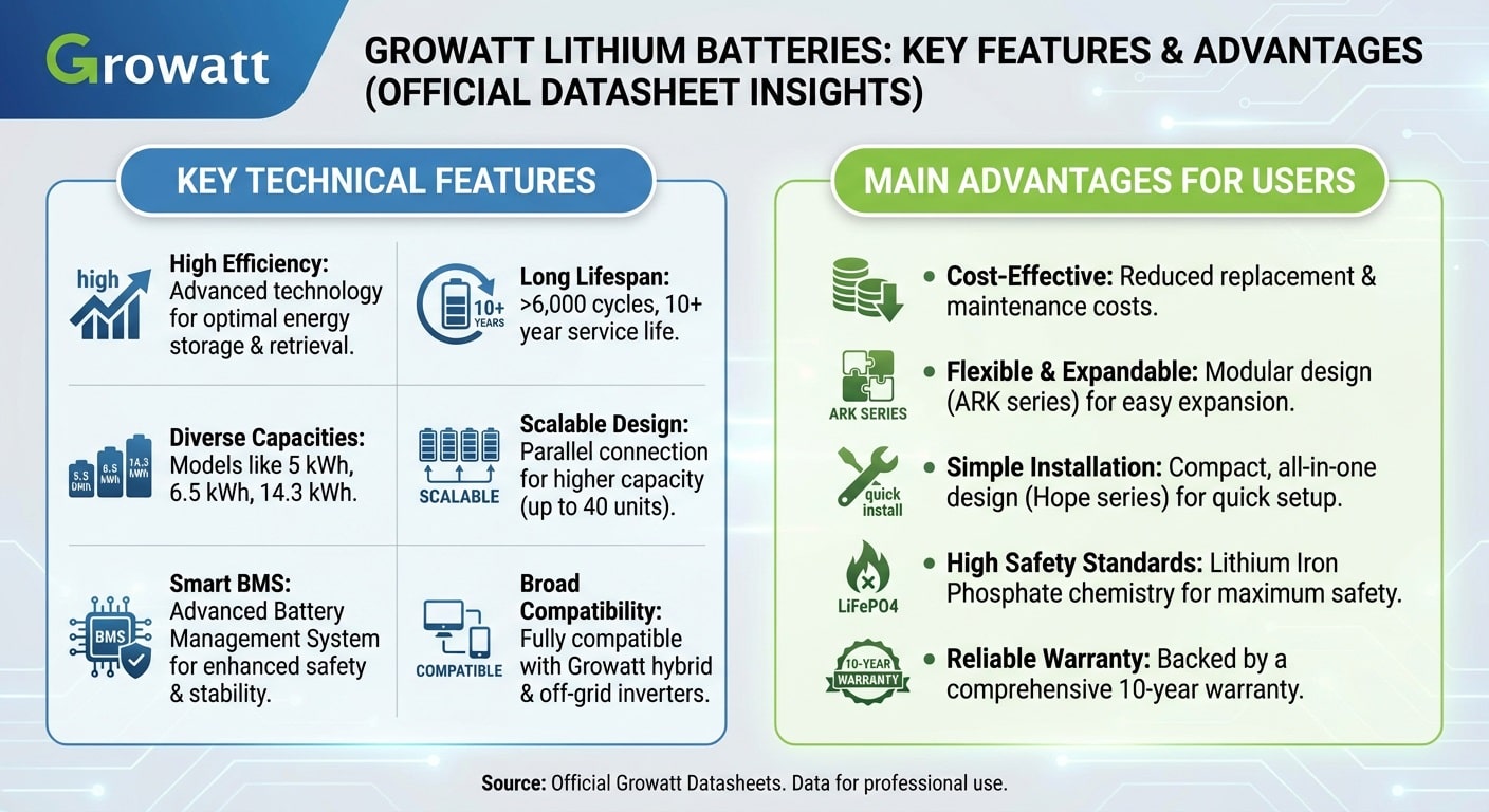 | Installation & Maintenance Tips | Verify originality via Growatt’s official portal Ensure proper ventilation Use matching Growatt inverters Conduct periodic health checks | Prevent technical issues Extend battery lifespan Minimize warranty risks |