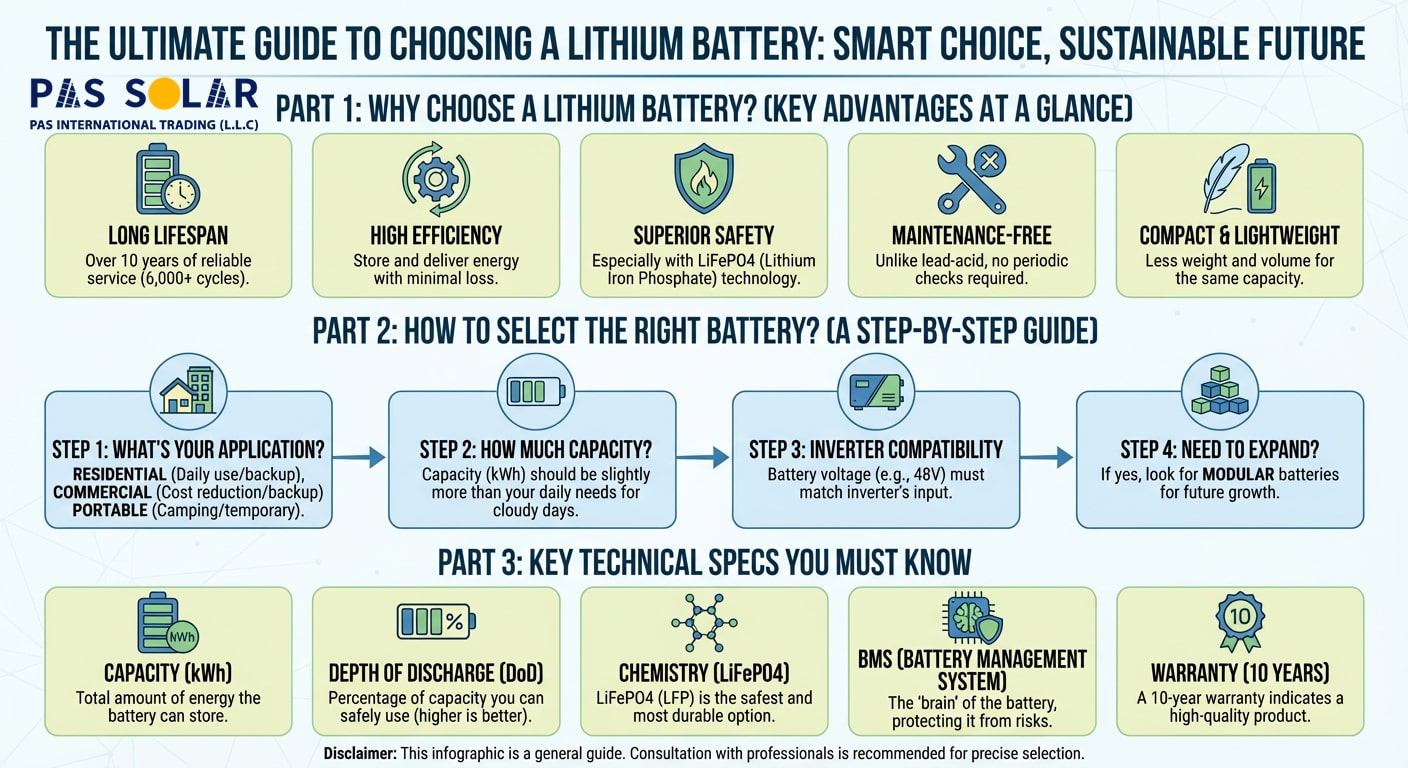 Working with a reliable Solar Lithium Battery distributor like Pas Solar, which offers warranties, local support, and a strong reputation, helps decrease risks such as lack of service, delayed deliveries, and fake goods. When it is correctly specified and installed, it delivers remarkable returns, and long-term energy for large-scale operations in Dubai and all over the UAE. So, it’s best to get your lithium batteries from Pas Solar and get in touch with us today.
